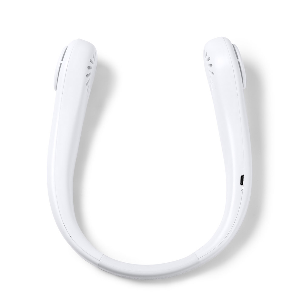 Ventilador de cuello realizado en ABS reciclado con tres velocidades. Incluye cable tipo C.
