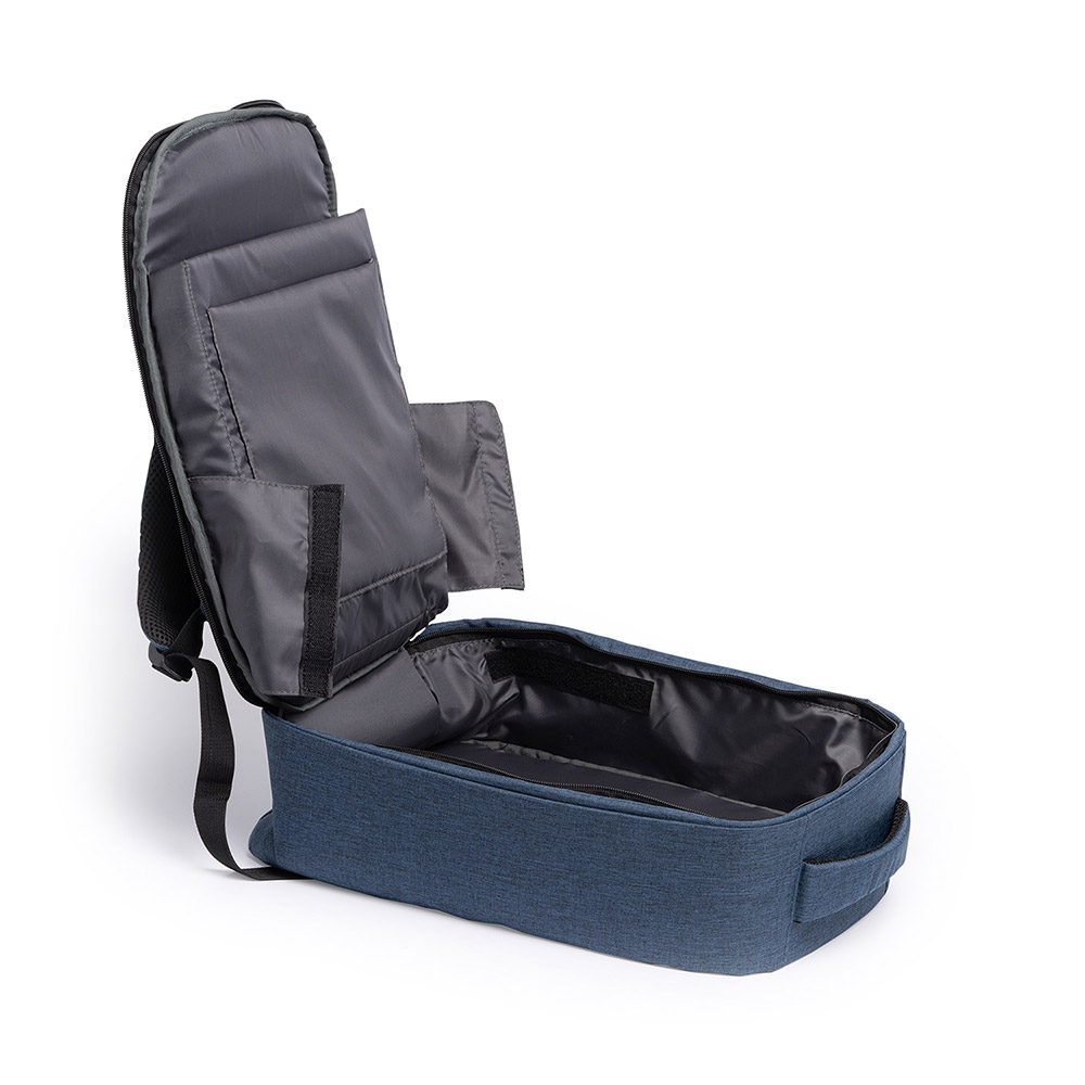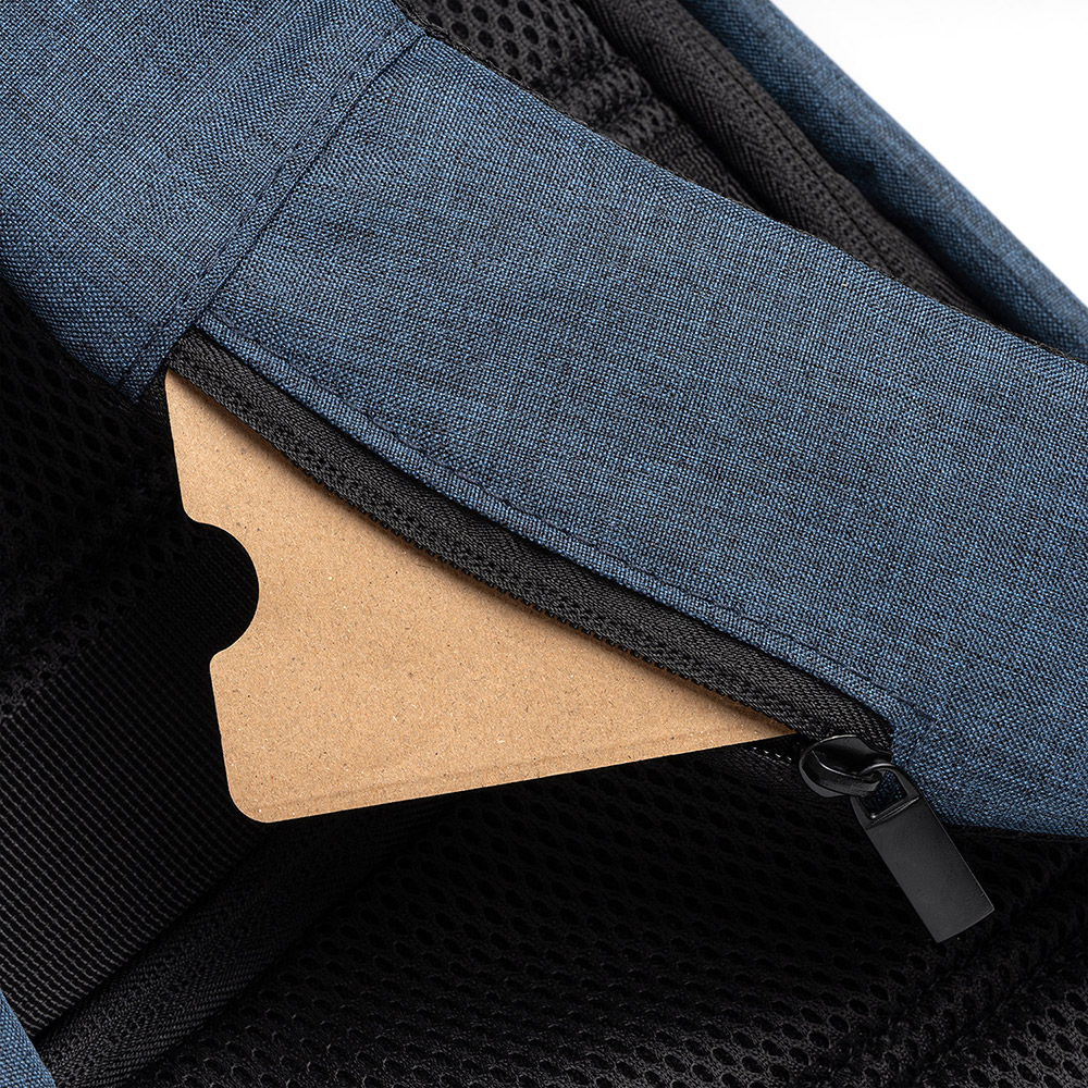 La mochila antirrobo realizada en RPET 300 D es una opción segura y sostenible para llevar tus pertenencias con tranquilidad. Con un diseño ergonómico, las tiras y la espalda acolchadas ofrecen comodidad durante todo el día.