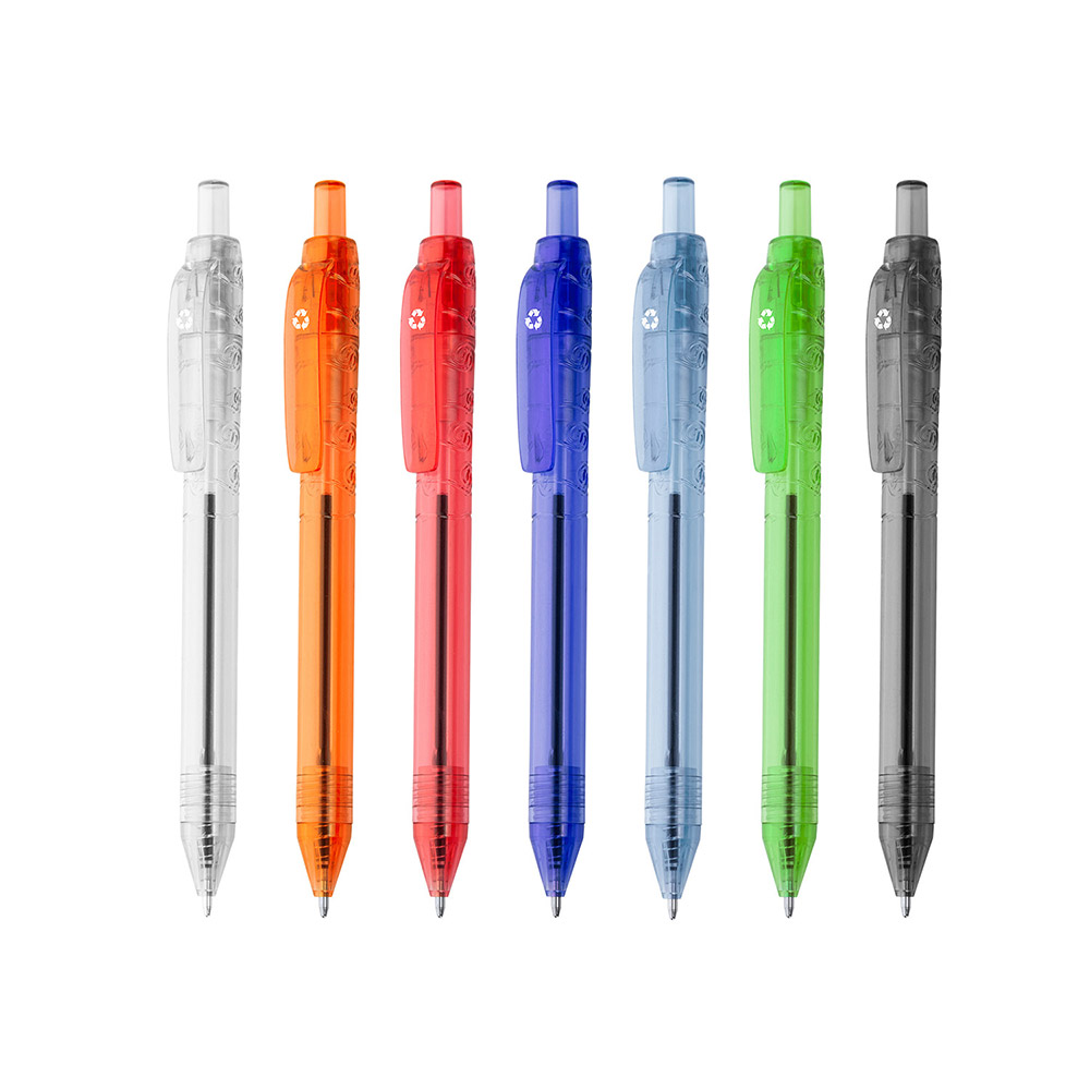 Bolígrafo de diseño translúcido realizado a partir de material RPET. Mecanismo pulsador. Tinta azul