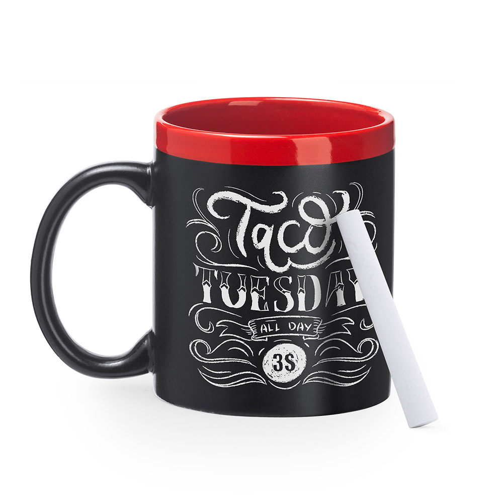 Fantástica taza pizarra con capacidad de 350 ml. Incluye tiza, para que puedas realizar tus propios diseños.