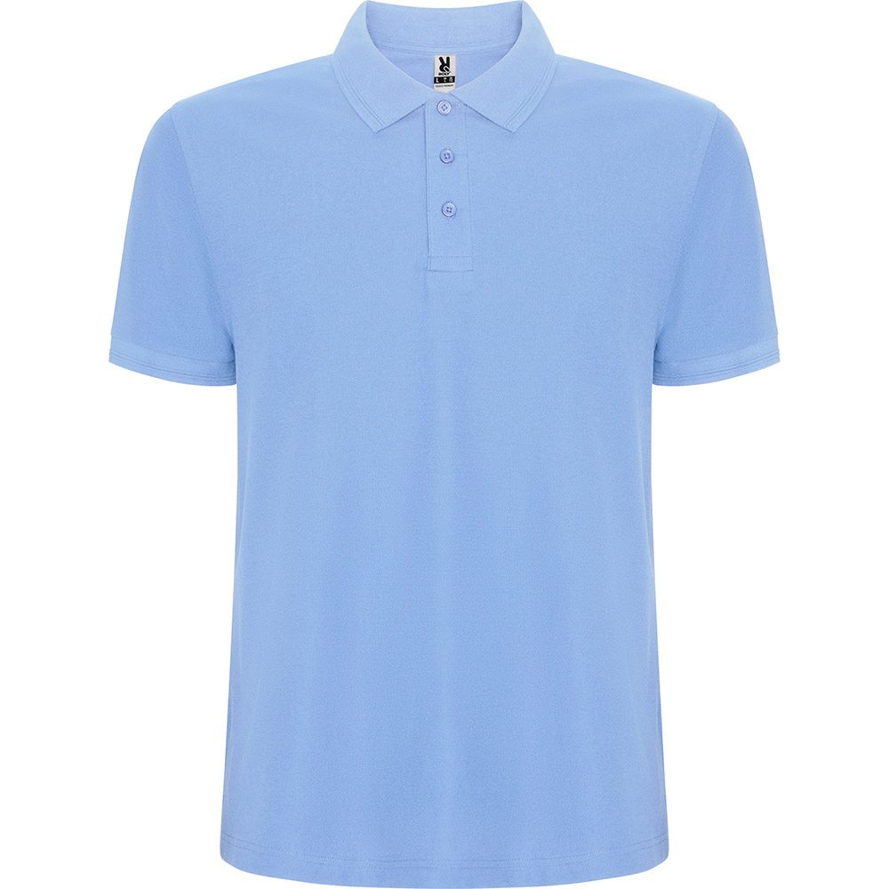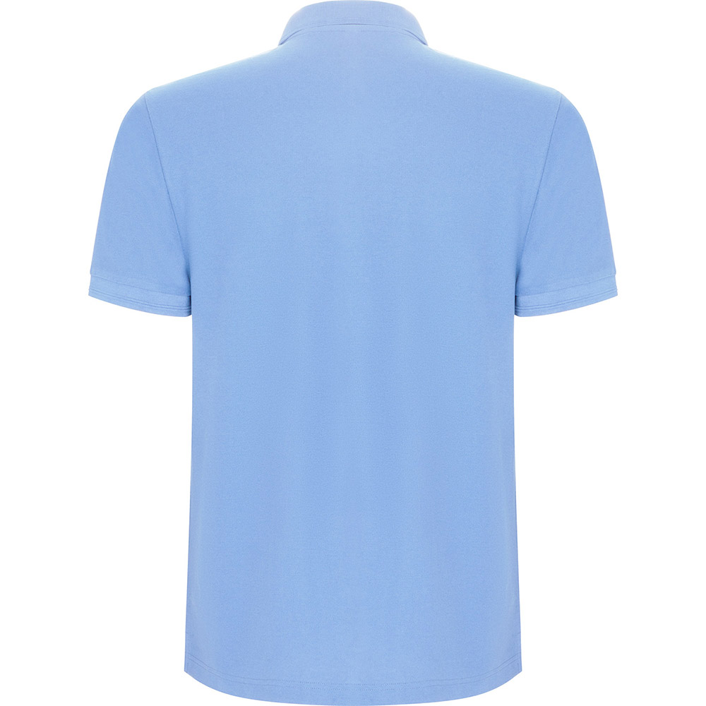 Polo de manga corta. Cuello y ribete de mangas en canalé 1×1 con detalle en relieve. Tapeta con 3 botones. Cubrecosturas reforzado en cuello. Aperturas laterales y bolsillo opcional.