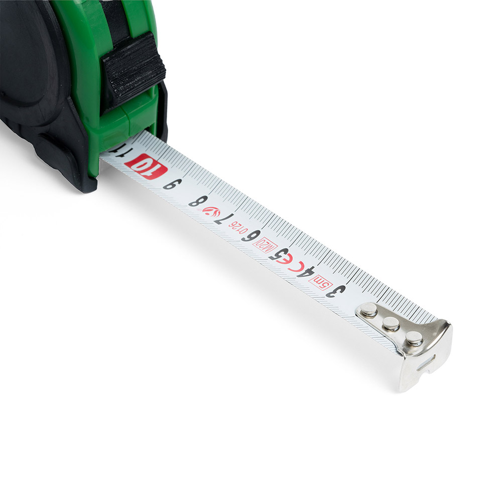 Fléxometro de 5 metros homologado, con mecanismo de bloqueo y cuchilla metálica. Cuerpo en color con funda de goma, clip metálico y cinta de transporte.