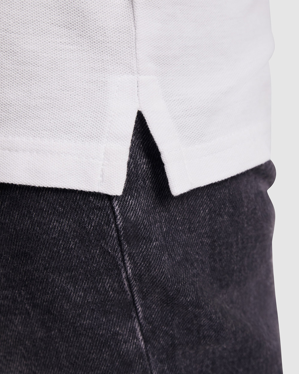 Polo de manga corta en algodón orgánico certificado OCS. Cuello y ribete de mangas en canalé 1×1. Tapeta con 2 botones. Cubrecosturas reforzado en cuello. Aperturas laterales en el bajo. Bolsillo opcional.