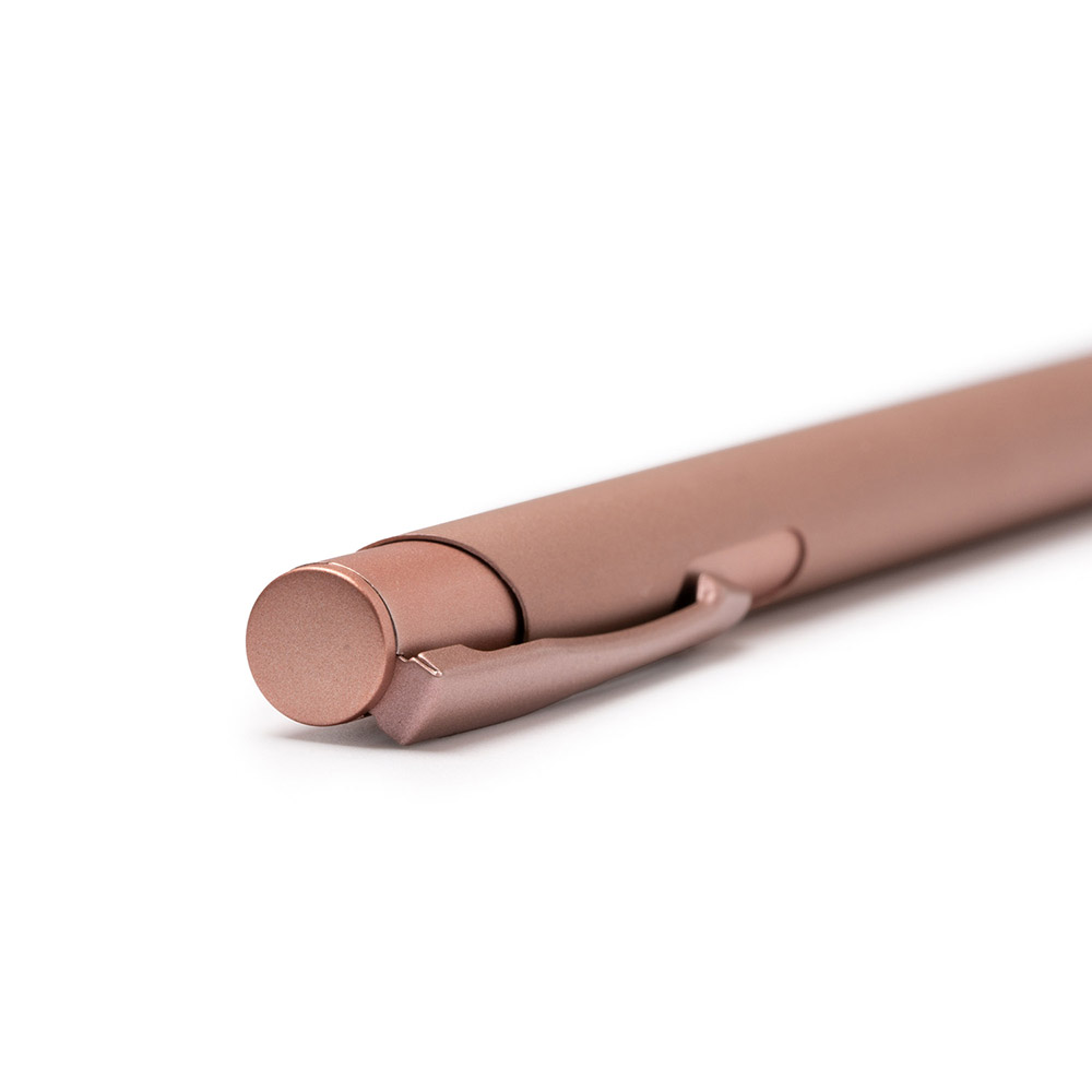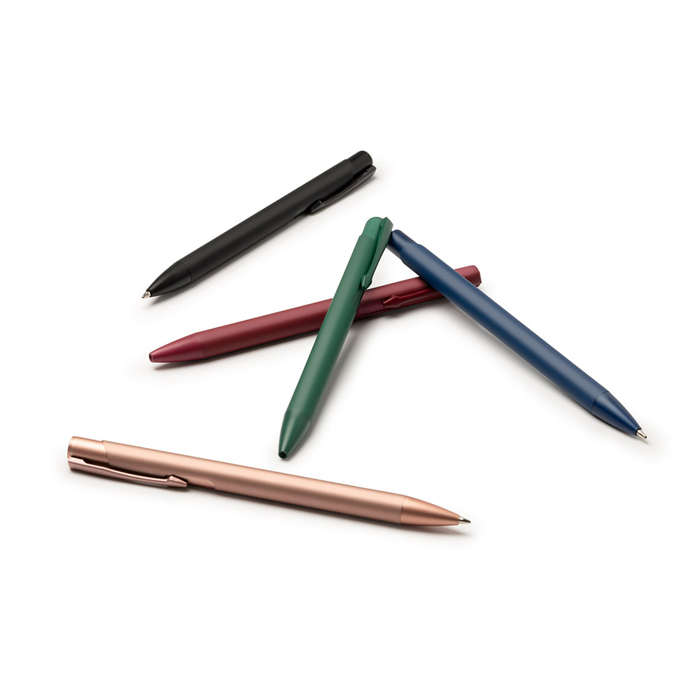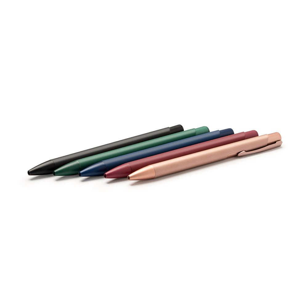 El bolígrafo presenta un cuerpo metálico con pulsador en acabado mate, ofreciendo un diseño elegante y duradero. Equipado con carga jumbo de tinta azul, es ideal para escribir de manera cómoda y sin interrupciones prolongadas.