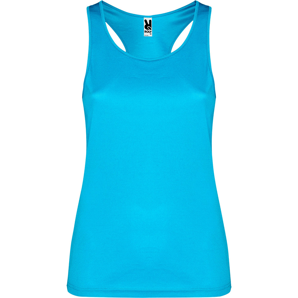 Camiseta técnica de tirantes entallada transpirable. Espalda nadadora con escote y sisas ribeteado.
