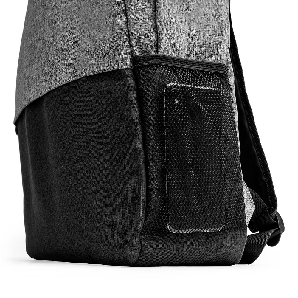 Mochila realizada en poliéster reciclado RPET 600D con diseño vigoré. Cuerpo y bolsillos interiores acolchados ideal para portátil y tablet. Doble compartimento y bolsillos laterales. Asas acolchadas.