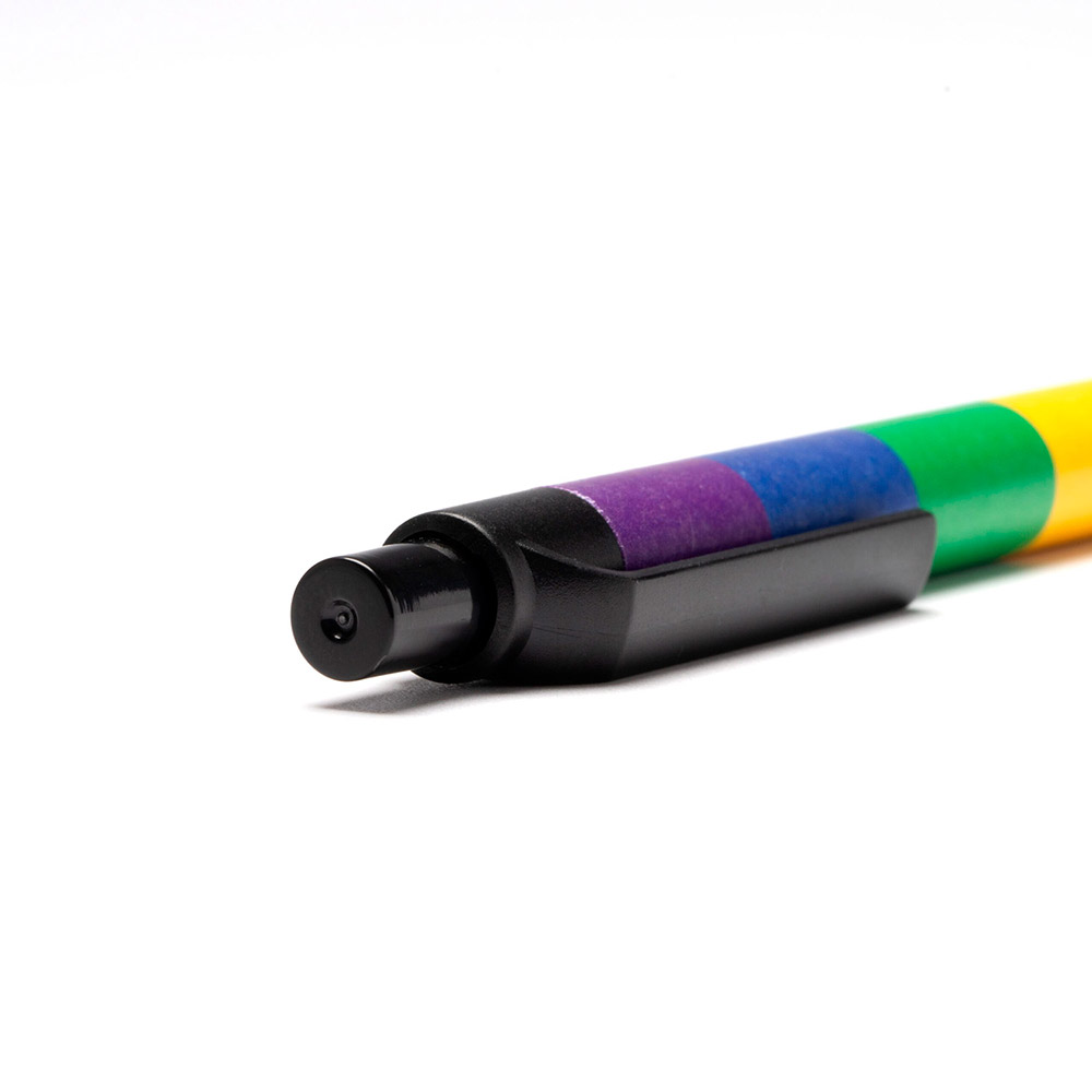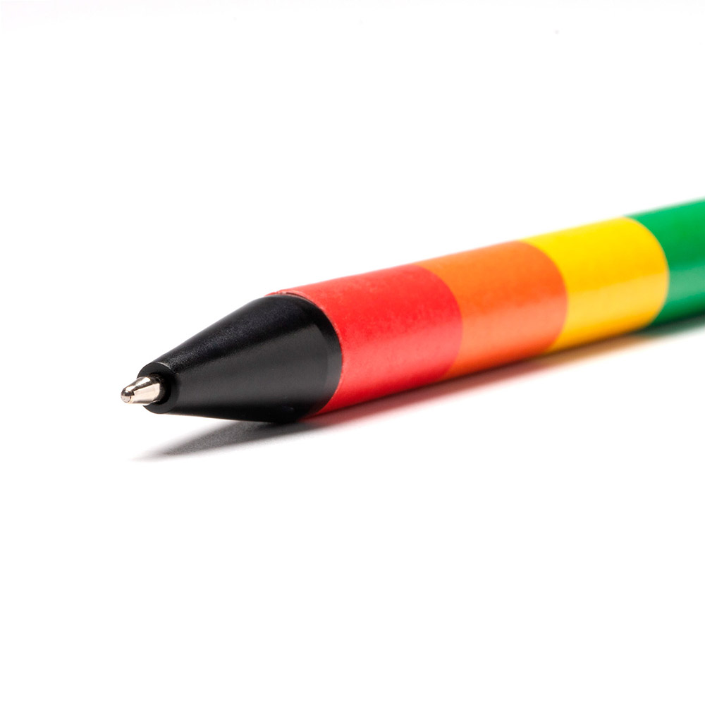 Boligrafo con cuerpo multicolor de mecanismo pulsador. Tinta azul.