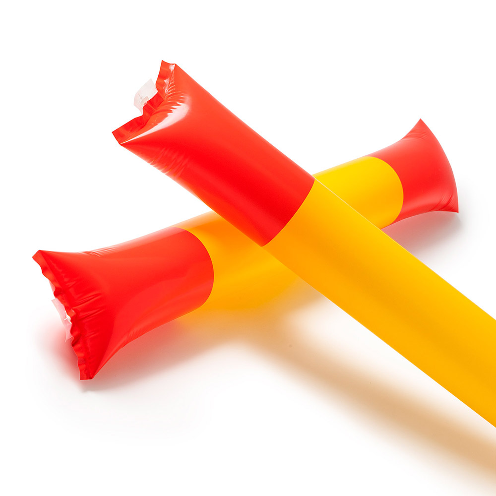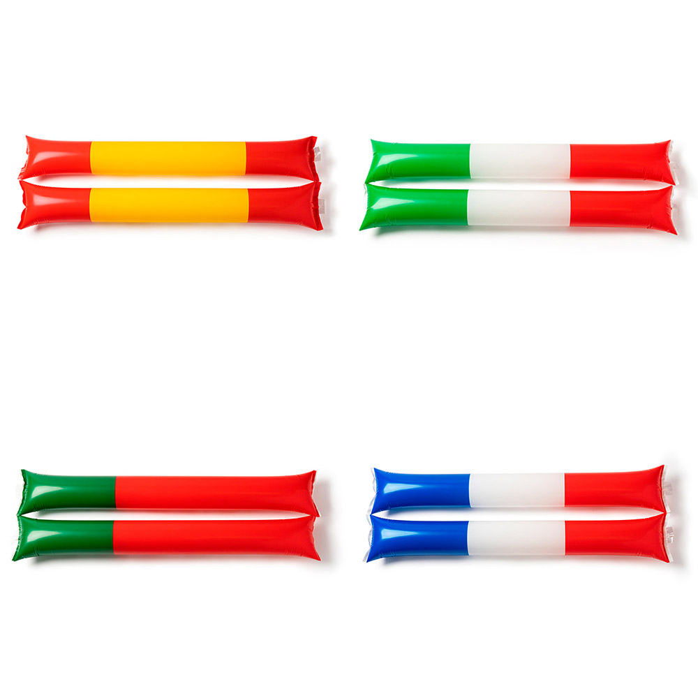 Set de bastoms / aplaudidores inflables realizados en LDPE. Reutilizables con válvula de inflado incluida. Estampado de banderas.