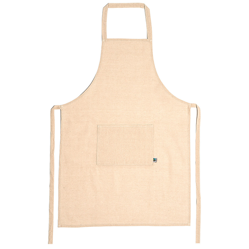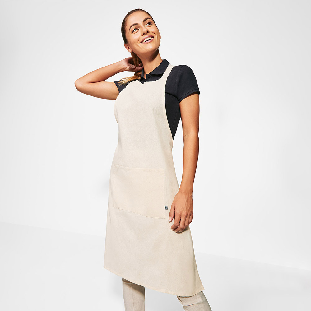 Delantal 100% algodón Fairtrade con bolsillo frontal. Talla única ajustable.