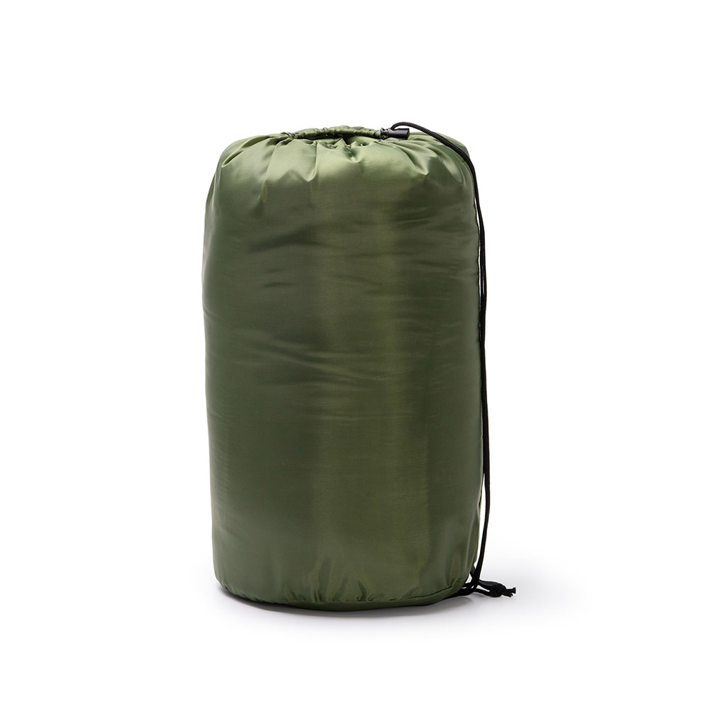 Saco de dormir acolchado realizado en políester reciclado. Cremallera de apertura completa. Incluye funda de transporte a juego.