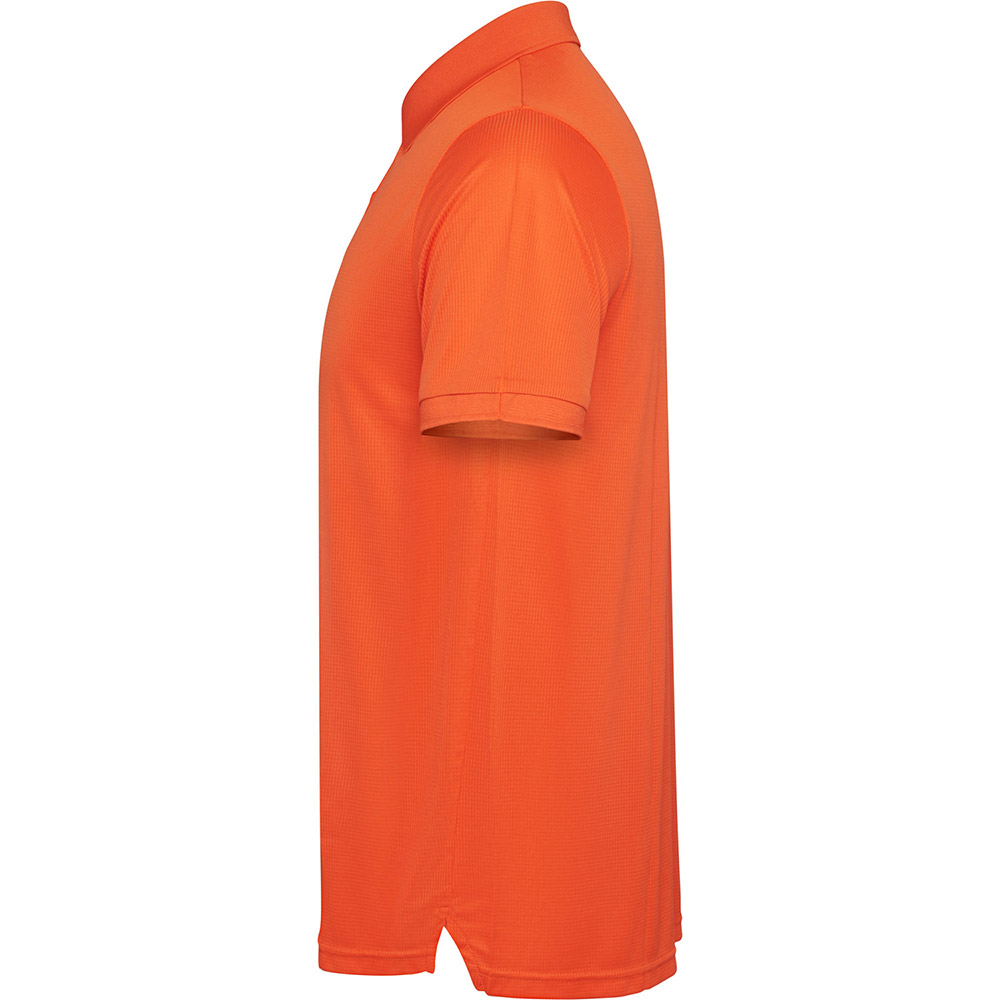 Polo técnico de marga corta. Cuello de poliester rib 1×1 con corchetes de plastico a tono con la tapeta. Cubrecosturas a tono. Manga con acabado rib 1×1 al tono.
