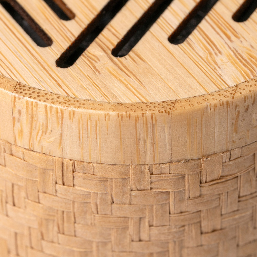 Altavoz inalámbrico realizado en combinación de fibras naturales y bambú.