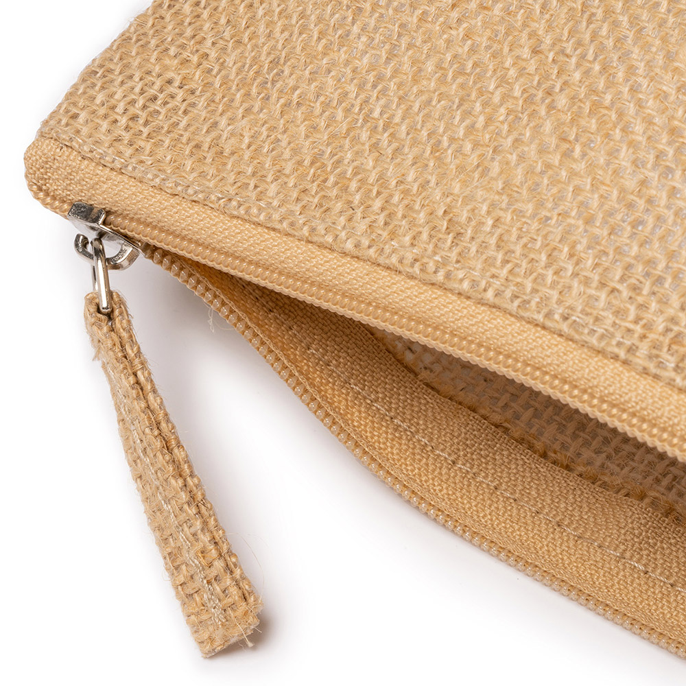 Neceser de yute con cremallera a juego y tirador de yute.