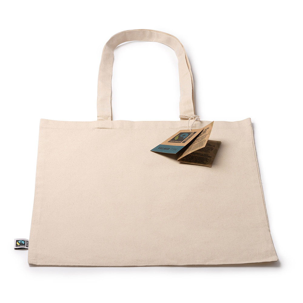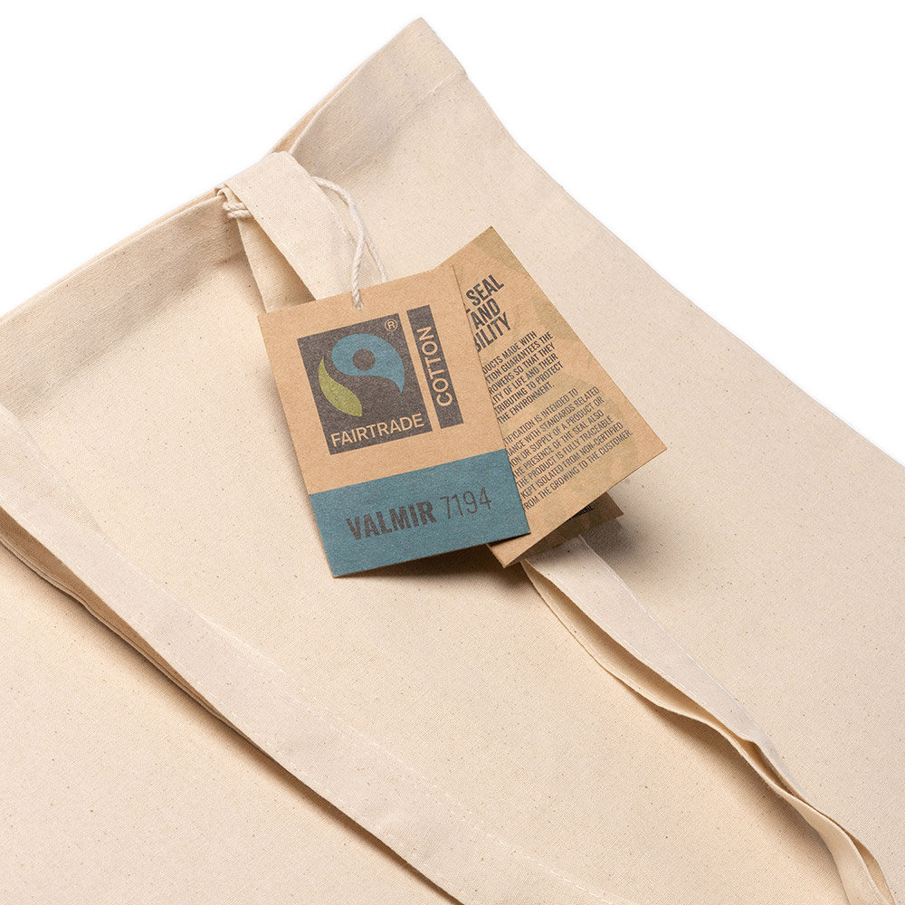 Bolsa 100% algodón Fairtrade de 180 g/m² con asas largas reforzadas de 70 cm. Personaliza tu bolsas con un diseño creativo.