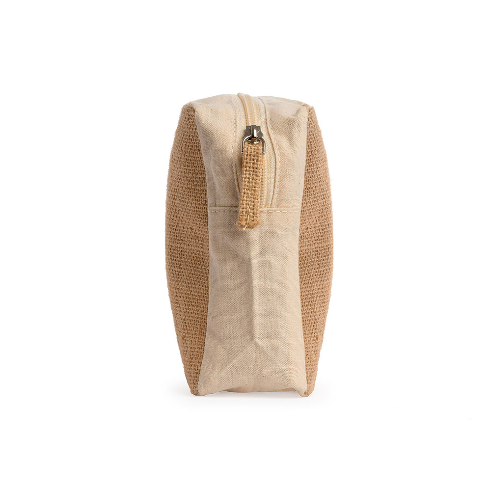 Neceser realizado en algodón y yute laminado. Práctico para guardar tus enseres. Cremallera con tirador de yute a juego.