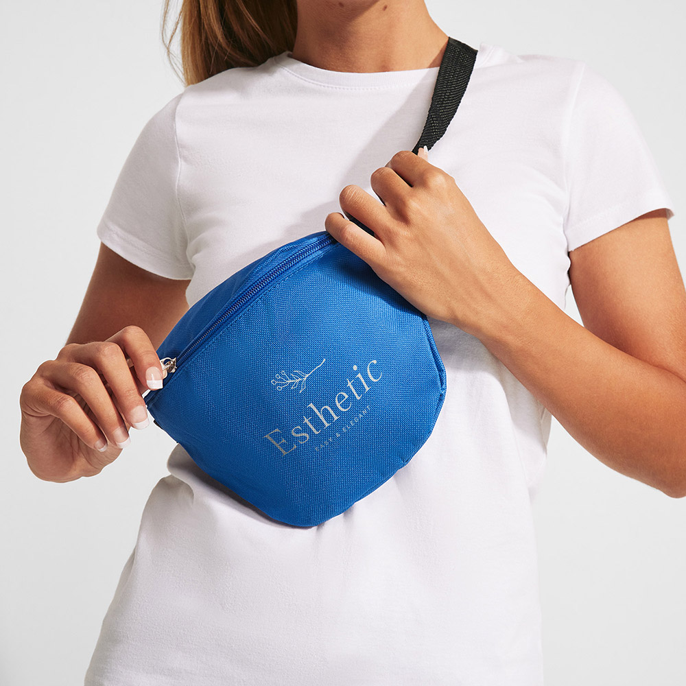 Riñonera con un bolsillo frontal y otro trasero. Cremalleras y tiradores en color a juego con la riñonera. Cinta y hebilla ajustadora en color negro.