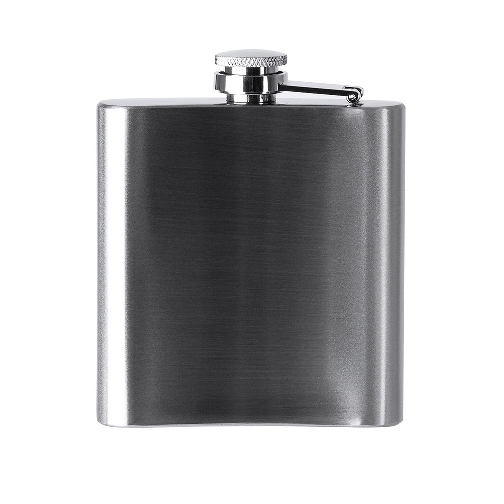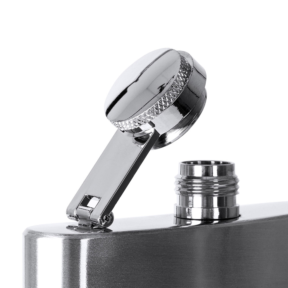 Petaca de acero inoxidable con cierre antigoteo de seguridad. Capacidad 175 ml.