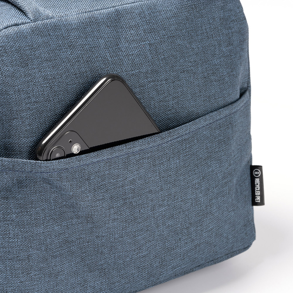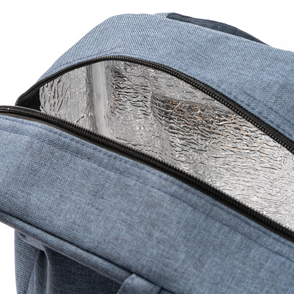Nevera realizada en 600D RPET con interior isotérmico. Bolsillo frontal y asas redondas acolchadas.