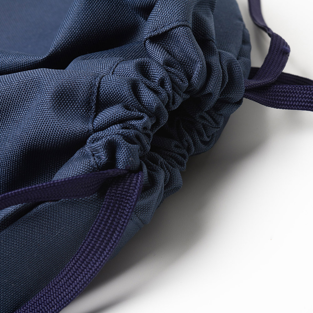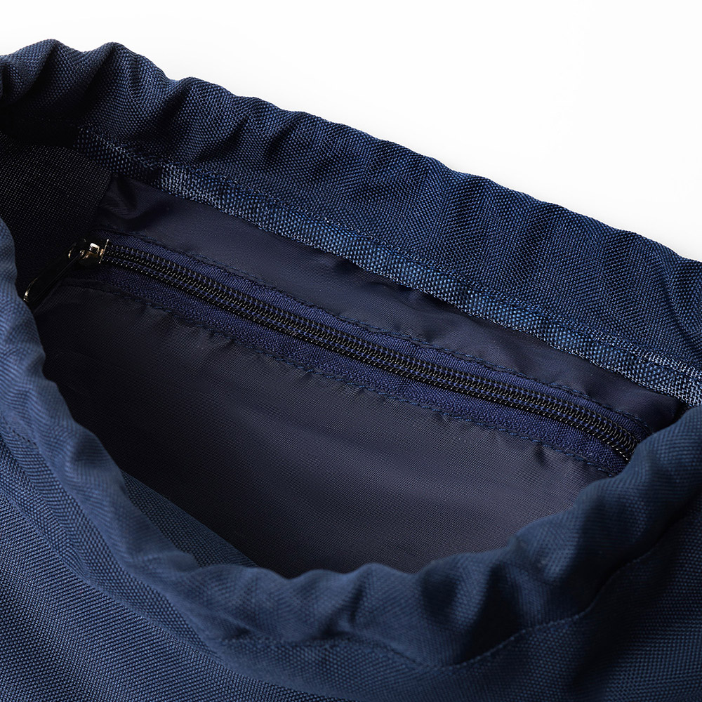 Mochila deportiva de diseño plano y fácil personalización. Cordones planos a tono. Bolsillo interior con cremallera. 100% poliéster 600D. 150 g/m².